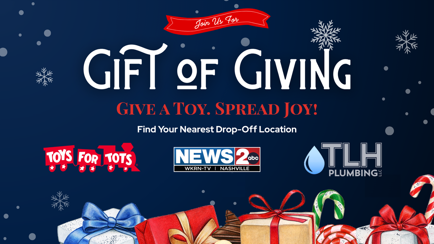 Dont miss the Toys 4 Tots Live Donation Event at TLH Plumbing on December 12th. WKRN will be on site at 3pm, 4pm, and 5pm. Bring a toy and enjoy food vendors, hot cocoa, cookie decorating, prizes, and more!